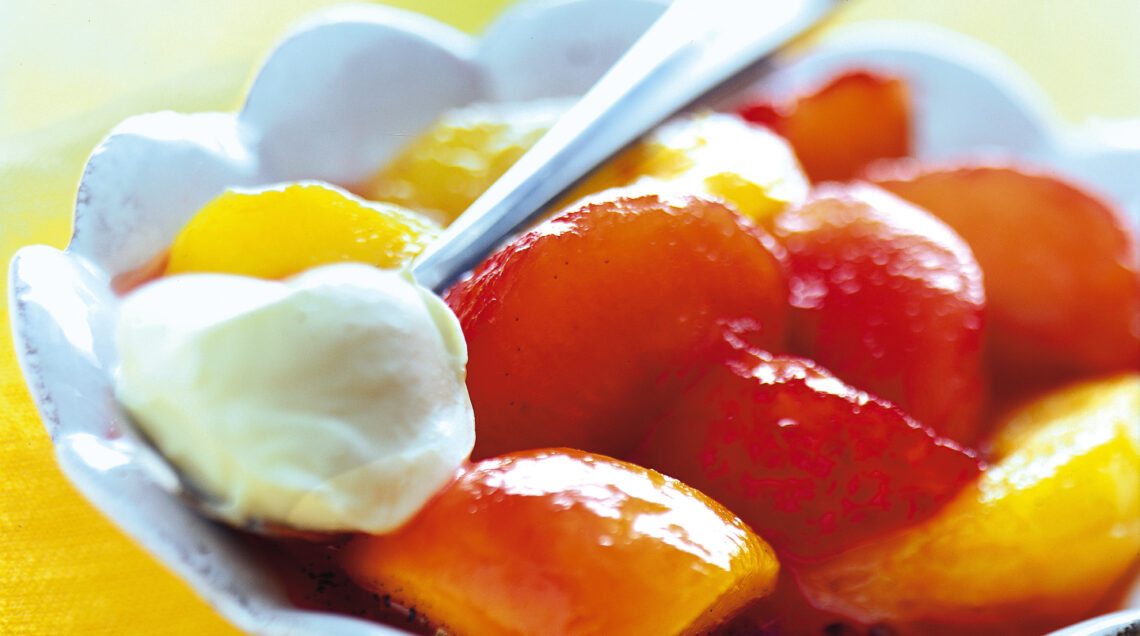 4) Dividi la frutta in coppette, poi versa su di essa delle cucchiate di sciroppo: se lo preferisci puoi accompagnare la composta alle spezie con qualche cucchiaiata di crème fraiche. Il sapore delicato di questa crema francese sottolinea alla perfezione il gusto delle spezie.