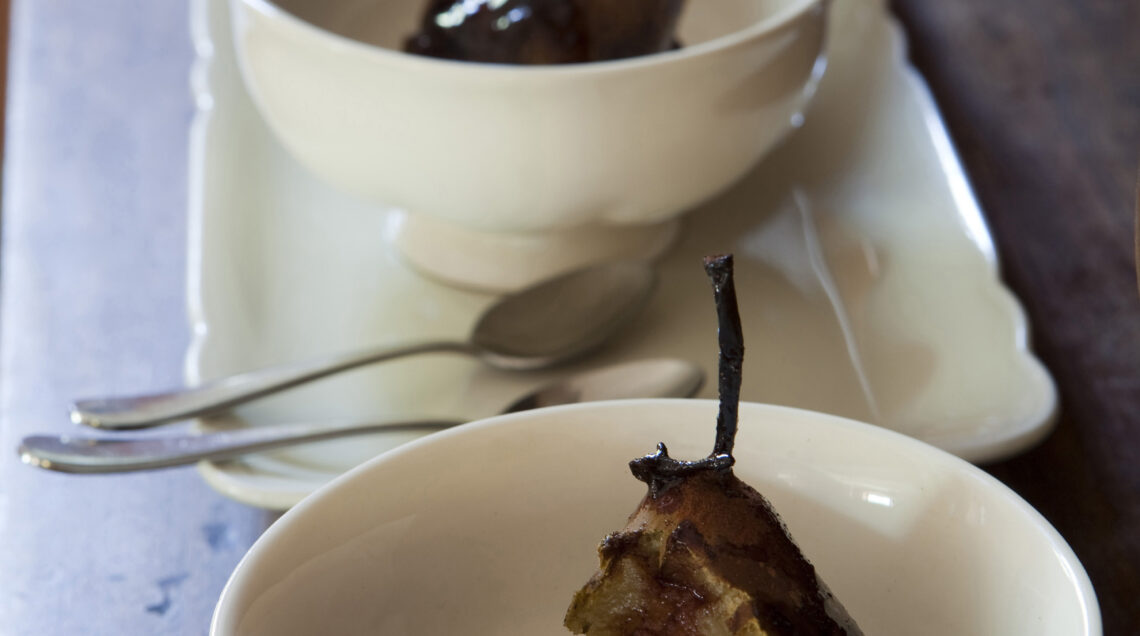 2) Servi le pere cotte al vino tiepide con un cucchiaio del loro sciroppo.