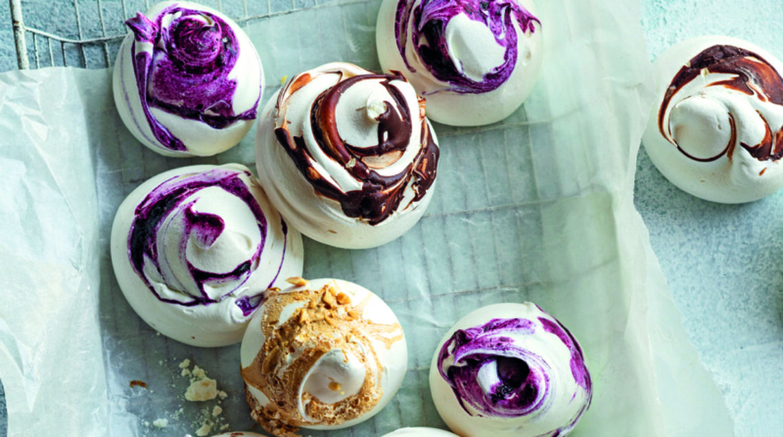 Piccoli dolcetti leggeri e colorati, le meringhe variegate ai lamponi, cioccolato e caramello sono delicate e sfiziose. Facilissime da fare con la meringa alla francese