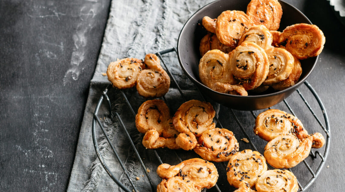 4) Sistemate i palmier su un paio di placche foderate di carta da forno, ben distanziati, e cuoceteli a 180° per una ventina di minuti.