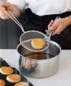 Se dopo la cottura il dolce risulta asciutto, non preoccupatevi perché dove passarlo nella bagna. Lasciatelo raffreddare perfettamente, facendolo riposare anche per 1 giorno. Se avete realizzato dolcetti piccoli tuffateli bella bagna perché si inzuppino in modo uniforme, fino al cuore.