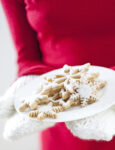 2 Prelevate piccoli pezzetti d'impasto, formate con questi 20-25 cilindretti di circa 15 cm di lunghezza e 7-8 mm di diametro. In una ciotolina disponete 200 g di zucchero e rotolatevi i cilindretti, in modo da brinare l'intera superficie con lo zucchero. Ripiegate un'estremità dei bastoncini, allineateli sulla placca rivestita di carta da forno e cuoceteli nel forno caldo a 180° per circa 12 minuti.
