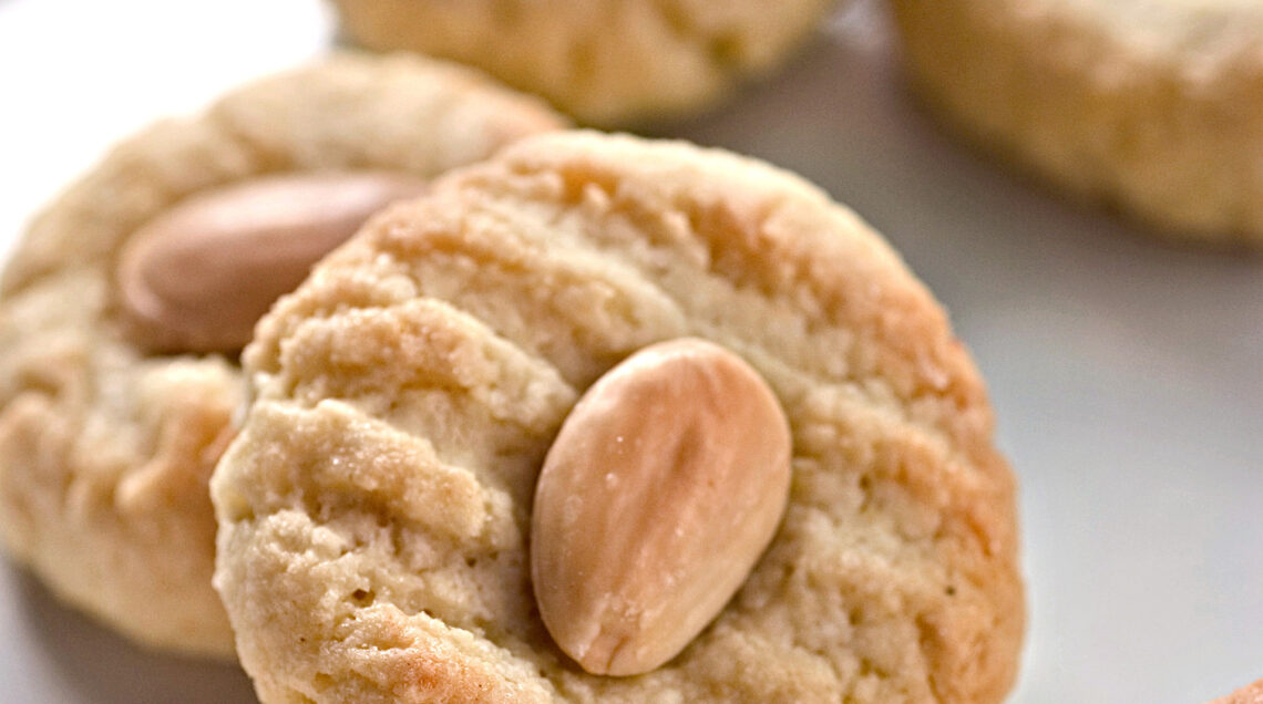 3) Metti la pasta sulla spianatoia leggermente cosparsa di zucchero a velo e stendila con il matterello allo spessore di un paio di cm. Con un tagliapasta rotondo di 3 cm di diametro, ricava tanti dischetti e passali tra i palmi delle mani in modo da ottenere delle palline; schiacciale leggermente con i rebbi di una forchetta.