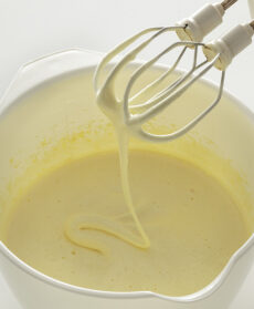 Utilizzando una frusta elettrica, incorporate alle uova sbattute la farina, setacciandola con un colino a maglie fitte e lasciandola cadere a poco a poco. Lavorate fino a quando sarà perfettamente amalgamata e avrete un composto morbido, liscio e omogeneo.