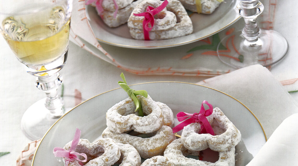 2 Prelevate dalla pasta tante piccole porzioni, formate dei cilindretti del diametro di 1 cm scarso e tagliateli in modo da ottenere tanti cordoncini lunghi 10-15 cm. Ripiegate e modellate i cordoncini di pasta in modo da ottenere tanti piccoli cuori, saldando le 2 estremità (potete optare anche per una forma più semplice tipo anello). Trasferisciteli delicatamente sulla placca rivestita con carta da forno e cuoci i biscotti in forno già caldo a 180° C per circa 15 minuti.