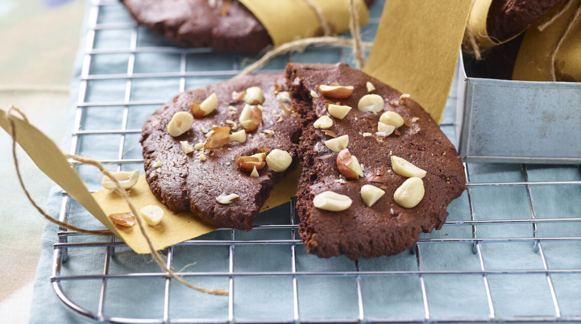 1) Iniziate la preparazione dei biscottoni al cacao setacciando la farina con il lievito, il cacao amaro e il bicarbonato, facendoli cadere direttamente nel mixer. Aggiungete lo zucchero, il sale, il burro ammorbidito a fiocchetti, il burro di arachide e le uova, quindi frullate gli ingredienti per ottenere un impasto omogeneo.