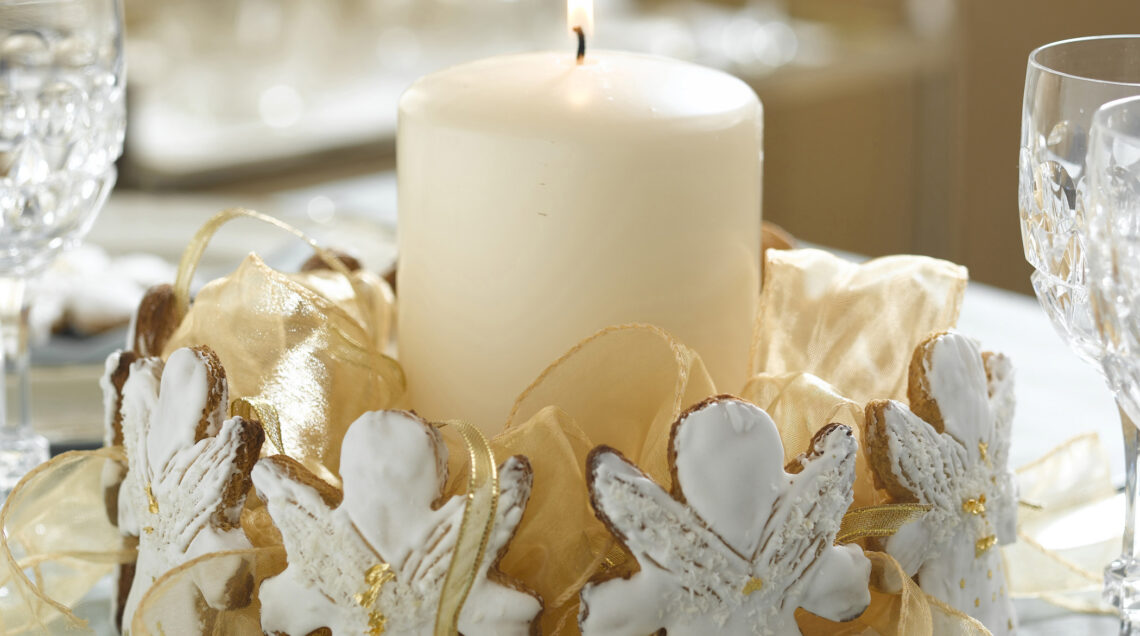 2) In mezzo al centrotavola di pasta al miele sistema una candela bianca: hai appena creato una perfetta atmosfera natalizia.