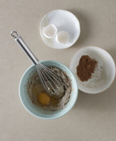 Aggiungete la farina, il lievito, la cannella, i semi della stecca di vaniglia. Incorporate quindi l'uovo e 200 g di cioccolato, spezzettato con un coltello.