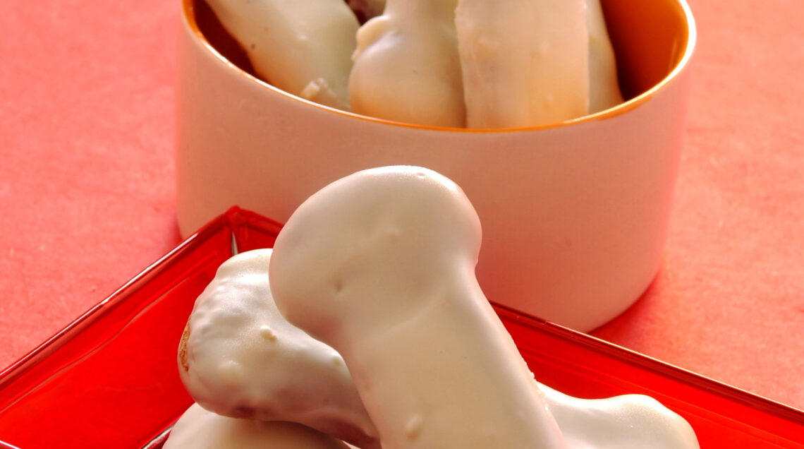 2) Tira una sfoglia e ritaglia tanti rettangoli di 8x4 cm, quindi ripiega verso il centro i 2 lati lunghi e, con un coltellino, sagoma le estremità a forma di osso. Cuoceili in forno, a 180°C per 15 minuti circa.