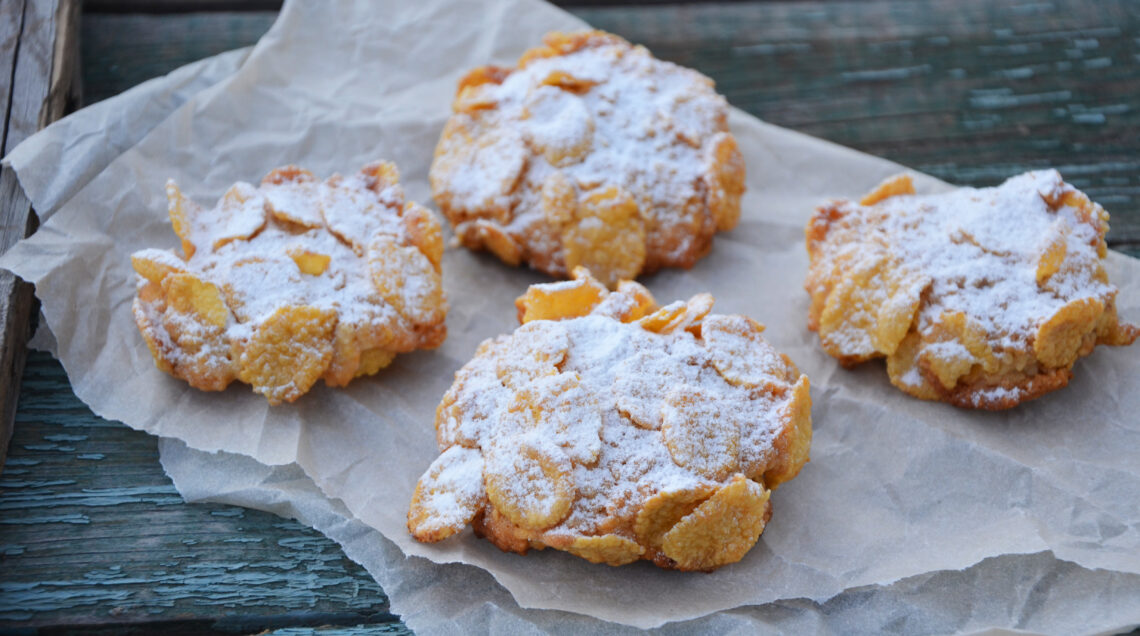 I biscotti rose del deserto sono deliziosi dolcetti al forno a base di burro, uova, farina, e croccanti corn flakes. Ideali anche a colazione