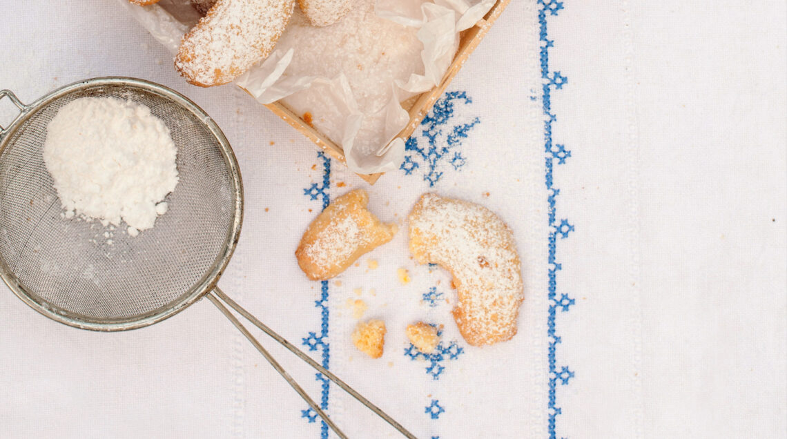 3) Suddividete la pasta in circa 35 porzioni e date a ognuna la forma di una mezzaluna. Disponete i biscotti su una teglia foderata con carta da forno e cuocete in forno caldo a 180° per 10 minuti. Lasciate raffreddare i Vanillekipferl quindi cospargerli con lo zucchero a velo.