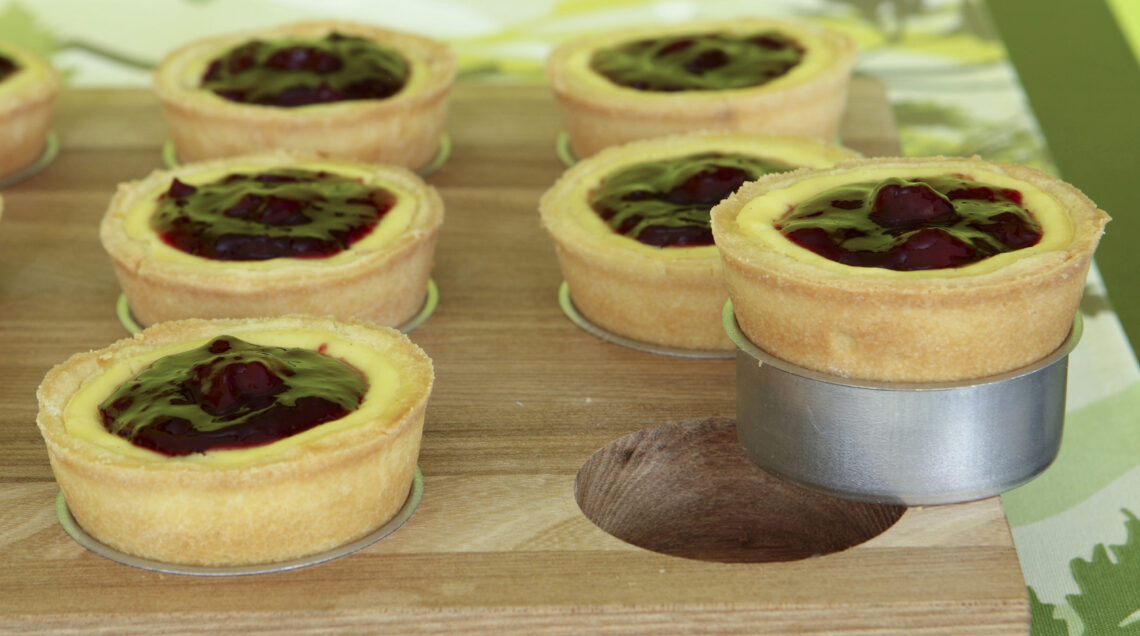 Riempite gli stampi con il composto di ricotta che avete preparato e cuocete i cheesecake nella parte bassa del forno a 160° per 40 minuti. Una volta sfornati lasciateli raffreddare in frigorifero e, al momento di servire, velate la superficie dei mini cheesecake con poca confettura di amarene e poi potete servire.