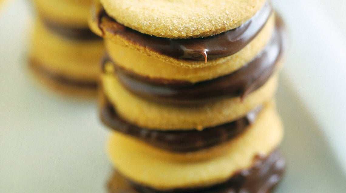 2) Mentre le cialde cuociono, prepara la crema al cioccolato: in una casseruola, spezzetta il cioccolato e scioglilo a bagnomaria. Quando è ben sciolto e amalgamato, estrai dal forno le cialde spalmane metà con il cioccolato e copri con quelle senza cioccolato. Aspetta qualche minuto che il cioccolato solidifichi e poi gusta subito le cialdine di farina gialla.