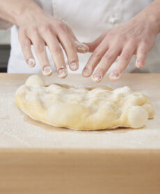 I tempi di lievitazione indicati nella ricetta sono piuttosto lunghi. Tuttavia il maestro Spadafora ci ha spiegato che, una volta preparato l’impasto, si può far riposare due ore a temperatura ambiente per poi stenderlo (senza attendere una notte). Il risultato sarà comunque molto soddisfacente.