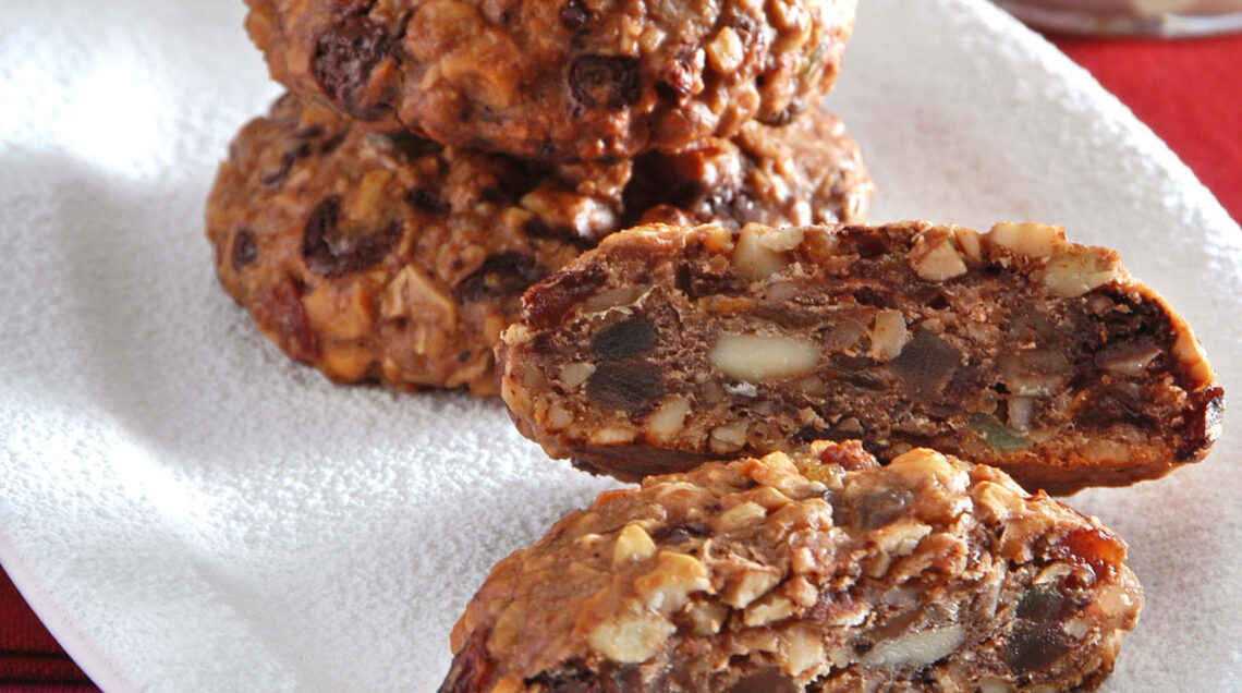 2) Prendi una terrina capiente e versa sia il cioccolato che le mandorle che le nocciole, unisci poi l’uvetta e i canditi, della noce moscata grattugiata, il pepe, la farina setacciata, la cannella e infine il miele sciolto in 4 cucchiai di acqua calda. Lavora tutti gli ingredienti fino ad avere un impasto compatto, quindi dividilo in 8 parti tutte simili tra di loro.