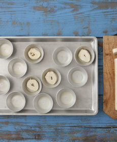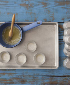 Fate fondere il burro in una casseruola per poi spennellatelo sul fondo e sulle pareti di tutti gli stampini.
