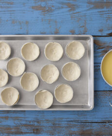 Tipiche del Portogallo, i pasteis de nata sono delle tortine di pasta sfoglia farcite con la crema
