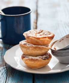 Diversi da regione a regione, i dolci conventuali portoghesi, come questo, hanno un denominatore comune: pochi ingredienti, su cui regnano incontrastati le uova e lo zucchero. Fragrante pasta sfoglia farcita con una crema morbida e profumata alla panna (in portoghese panna si dice "nata”), perfetti a colazione, merenda o da abbinare al caffè. Conosciuti anche come pasteis de Belèm, la ricetta originale è custodita segretamente nel monastero dell’omonimo quartiere di Lisbona, dove la leggenda narra che siano stati creati nel XIX secolo.