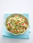 2) Frulla al mixer o al frullatore 4 uova, 200 g di zucchero, 500 ml di latte, 200 ml di latte di cocco, 3-4 cucchiai di parmigiano reggiano grattugiato, 3 cucchiai di farina di cocco o cocco grattugiato, 2 cucchiai di burro fuso, 2 di farina 00, 120 g di farina di mais macinata finemente, tipo fioretto o fumetto, e 1/2 bustina di lievito per dolci setacciato.