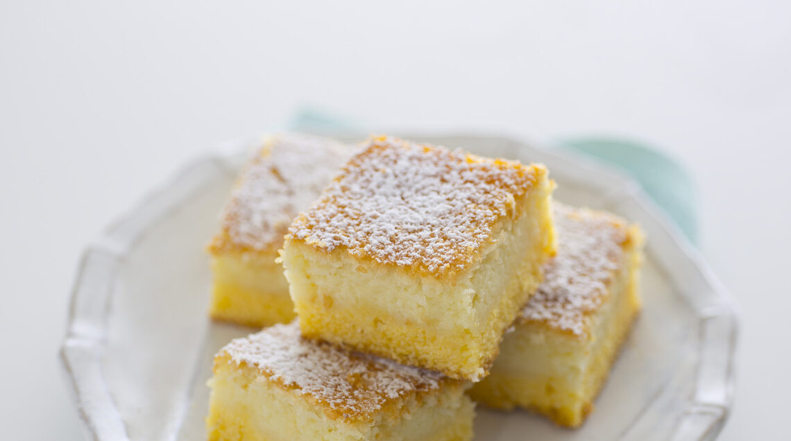 4) Lascia riposare il dolce per circa 1 ora prima di sformarlo. Taglialo a quadratini, spolverizzalo con zucchero a velo e servi.