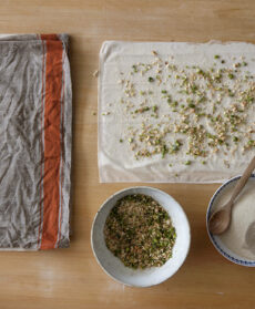 Ungete nuovamente il foglio di pasta fillo e cospargetelo con un cucchiaio di frutta secca.