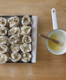 Sistemate il turbante in piedi nella teglia. Proseguite allo stesso modo con tutti gli altri fogli.