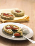 3) Stendi la frolla a 1/2 cm di spessore, ricava tanti dischi con un tagliapasta di 2 cm di diametro in più rispetto a quello degli stampini. Ungi d'olio gli stampini, spolverizzali con la farina, disponivi i dischetti di frolla e bucherellali con una forchetta. Coprili con carta da forno bagnata e strizzata e riempi con legumi secchi. Cuoci in forno a 180°C per 20 minuti, poi elimina carta e legumi.