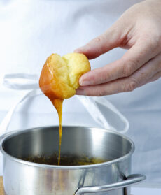 Lavorando velocemente, tuffa nel caramello la parte superiore di ogni bignè.