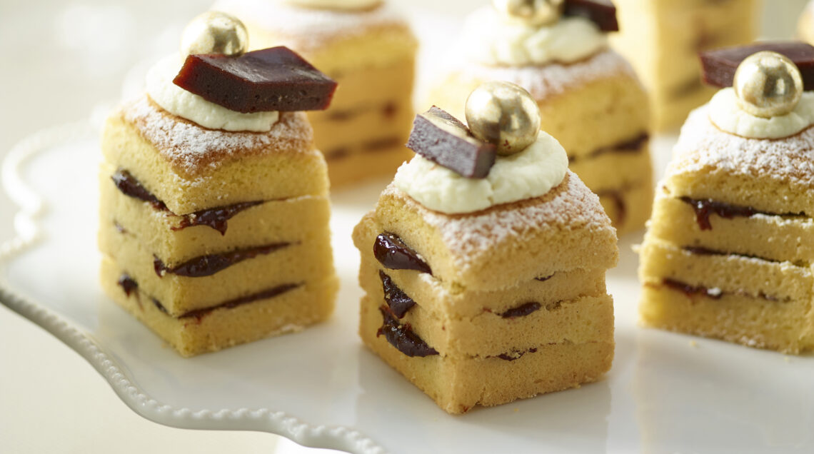 3 Sformate le tortine e fatele raffreddare. Tagliate ognuna in 3 strati. Spalmate i primi due strati di ognuna con la confettura, poi ricomponete le tortine.