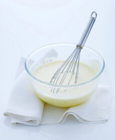 Trasferite la bastardella sopra una pentola con poca acqua in leggera ebollizione e montate gli ingredienti con una frusta per 4-5 minuti fino a che si addensano. Levate la bastardella dal fuoco e continuate a montare fino a che il composto si raffredda.