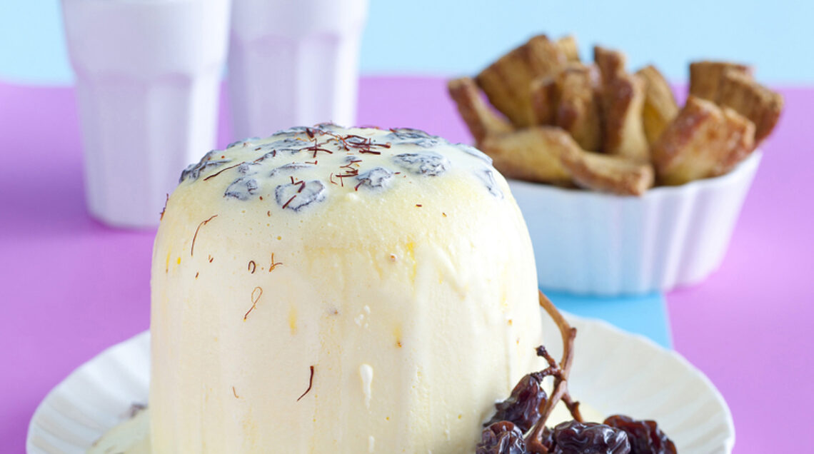 Un semifreddo profumato, aromatico elegante: zafferano e Marsala, ben bilanciati, regalano una proposta creativa