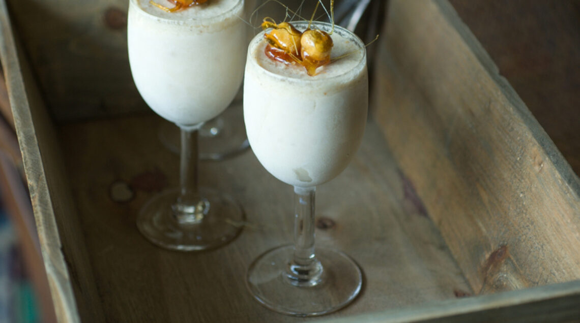 Un dolce al bicchiere a base di panna fresca. Elegante e raffinato è guarnito con nocciole intere caramellate