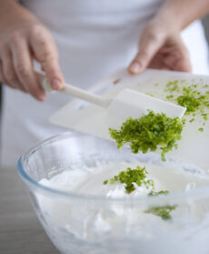 Unite alla meringa la scorza dei lime tenuta da parte e mescolate con una spatola.