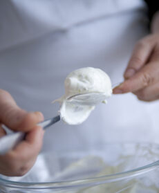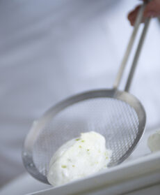 Prelevate un cucchiaio di composto e con l'aiuto di un secondo cucchiaio formate una quenelle.