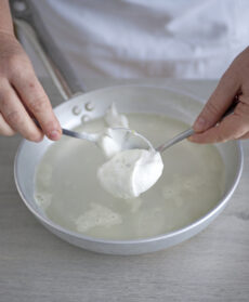Fatela scivolare nello sciroppo bollente e preparate altre 3-4 quenelle.