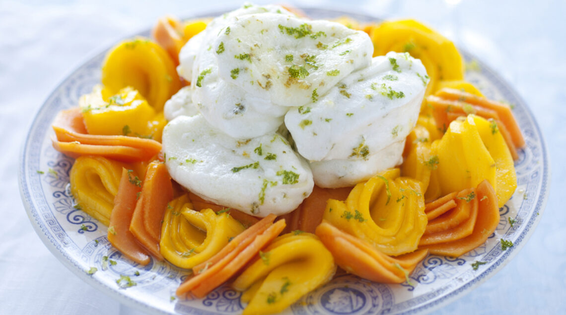 La tagliata di mango e papaia con meringa morbida al lime è un ottimo dolce estivo per gli amanti della frutta esotica, come mango e papaia, unita al sapore più aspro del lime e alla morbidezza e delicatezza della meringa.