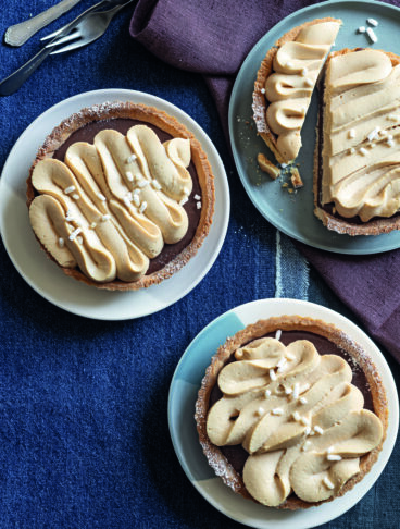 3 Stendete la pasta con il matterello e rivestitevi degli stampi per tartellette (rotondi o quadrati); forate il fondo con una forchetta e cuocete in forno a 175° per 20 minuti (controllate che il fondo di frolla non si sollevi durante la cottura ed eventualmente foratelo ancora per far uscire l'aria).