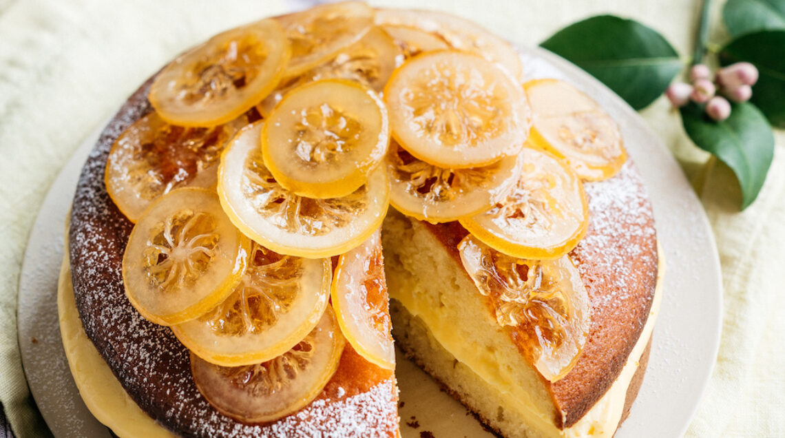 7) Spennellate i due dischi con un po' dello sciroppo di canditura dei limoni tenuto da parte diluito, con del succo di limone (nella proporzione di 2 parti di sciroppo e 1 parte di succo). Farcite la base della torta con la crema e ricomponete il dolce.