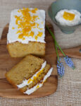 5) Sforma la torta, capovolgila su una gratella e tagliala a metà in orizzontale. Inzuppa la base con metà del succo di mele.