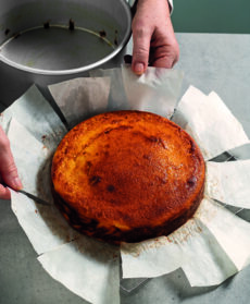 Sfornate, lasciate riposare la torta 10 minuti, poi staccate la carta da forno dal bordo e trasferitela su una gratella a raffreddare.