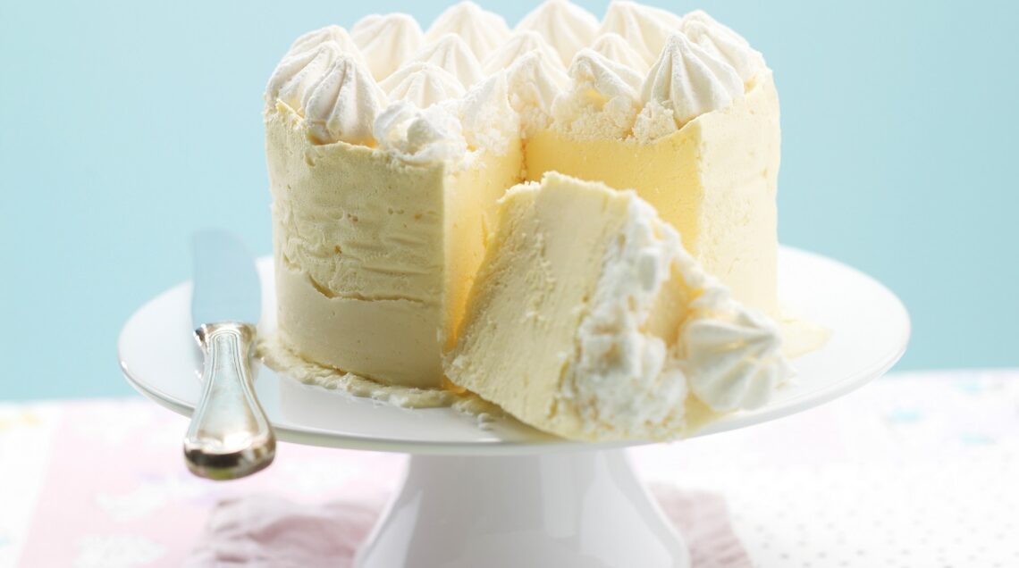 5) Versate all'interno il composto preparato, decorate la superficie con le meringhette e fate rassodare in freezer per 3 ore.
