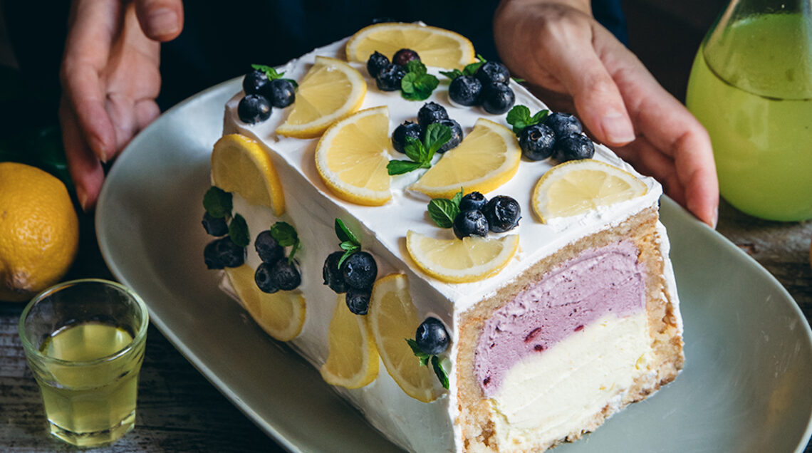 Torta gelato allo yogurt, mirtilli e lemon curd
