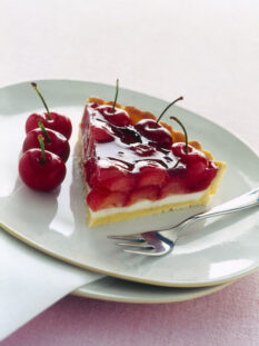 Torta con bavarese di yogurt e ciliegie