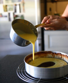 Prendete un disco di pasta frolla e usatelo per rivestire uno stampo a cerniera antiaderente di 22-24 centimetri di diametro. Coprite la pasta con un foglio di carta da forno riempita di fagioli secchi e cuocetela nel forno caldo a 200° per 10 minuti. Trascorso questo tempo, eliminate la carta e i fagioli, passate di nuovo lo stampo in forno e cuocete la pasta ancora per 5-10 minuti.