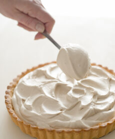 Stendete la pasta sablée fra 2 fogli di carta da forno a uno spessore di 1/2 cm. Sistemate il disco di pasta nello stampo foderato con carta da forno bagnata e strizzata, bucherellate il fondo con la forchetta, coprite con carta da forno e legumi secchi e cuocete in forno a 180° per 30 minuti. Eliminate carta da forno e legumi e proseguite la cottura per altri 10 minuti; lasciate raffreddare e sformate la crostata.