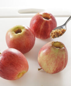 Un dolce rustico a base di mele in una variante creativa che farcisce i frutti con confettura, biscotti e liquore. Da provare a colazione o merenda