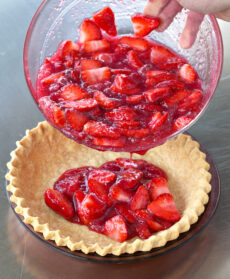 1) Inizia a lavorare alla ricetta della crostata di fragole al kirsch preparando l’impasto di base: metti in una terrina la farina, 70 grammi di burro freddo tagliato a pezzetti, 1/4 di cucchiaino di sale e 2-3 cucchiai di acqua fredda. Lavora con rapidità ed energia la pasta, stendila e adagiala in una tortiera di 22 centimetri di diametro foderata di carta da forno.