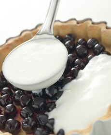 Aggiungi il composto di latte e gelatina allo yogurt e amalgama anche la panna montata. Sgocciola le ciliegie dallo sciroppo di cottura e tieni da parte quest'ultimo. Distribuisci i frutti nel guscio di frolla freddo. Copri il tutto con la bavarese di yogurt preparata, aiutandoti con un mestolo. Trasferisci il dolce in frigorifero a rassodare per almeno 4-5 ore.
