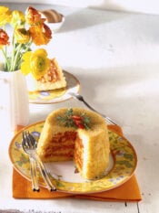 11) Sformatela su un piatto, spolverizzatela di zucchero a velo e servitela con il coulis di lamponi.