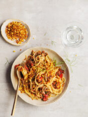 9) Intanto preparate il coulis di lamponi: fate bollire 150 g di acqua con 50 g di zucchero, togliete dal fuoco, unite